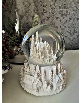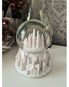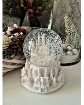 OZDOBA ŚWIĄTECZNA - SZKLANA KULA Z POZYTYWKĄ - ZIMOWA WIOSKA III
