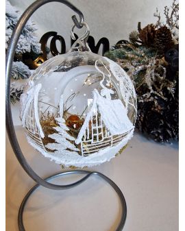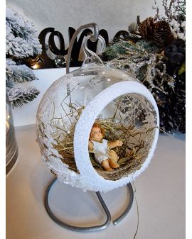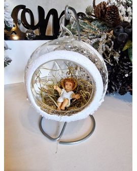OZDOBA ŚWIĄTECZNA - DUŻA BOMBKA 120 mm SZOPKA model XIV + stojak