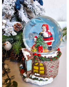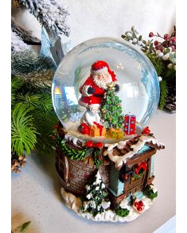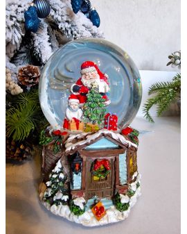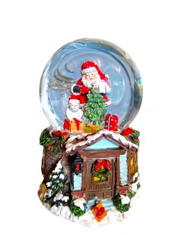 OZDOBA ŚWIĄTECZNA - SZKLANA KULA MIKOŁAJ Z CHOINKĄ model II I POZYTYWKĄ