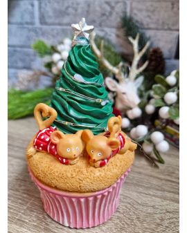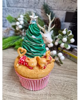 OZDOBA ŚWIĄTECZNA MYSZ MYSZKA Z CHOINKĄ NA MUFINCE LED