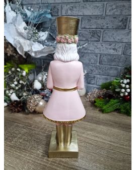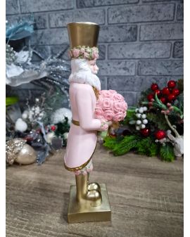 FIGURKA ŚWIĄTECZNA - RÓŻOWY DZIADEK DO ORZECHÓW z bukietem róż