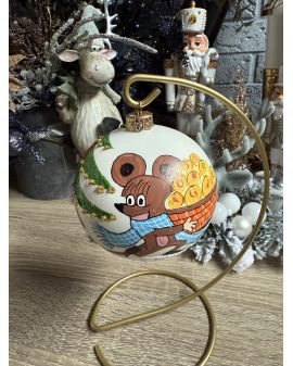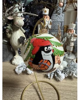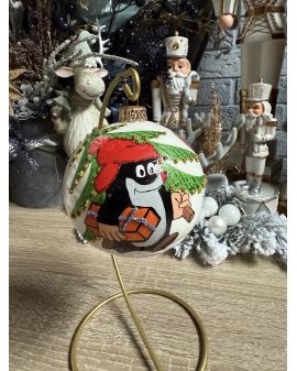 OZDOBA ŚWIĄTECZNA - ŚREDNIA BOMBKA 100 mm KRECIK z choinką