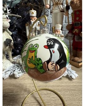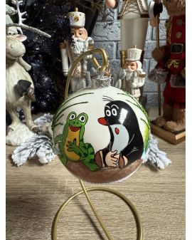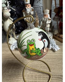 OZDOBA ŚWIĄTECZNA - ŚREDNIA BOMBKA 100 mm KRECIK z żabką
