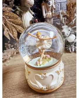 Figurka wykonana jest z ceramiki wysokiej jakości malowana specjalnymi lakierami. Szklana kula z pozytywką z modelem szopki bożonarodzeniowej. Po nakręceniu wybrzmiewa kolęda.