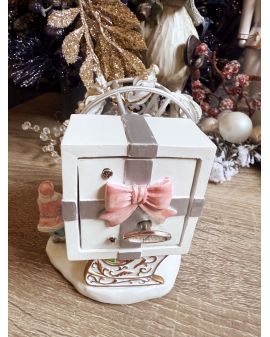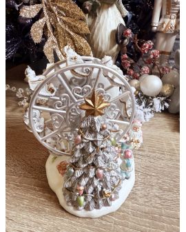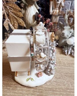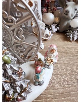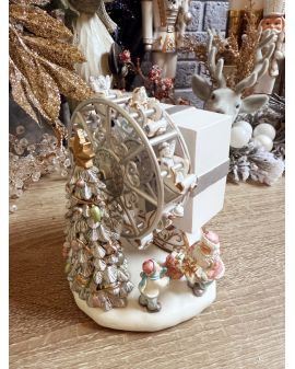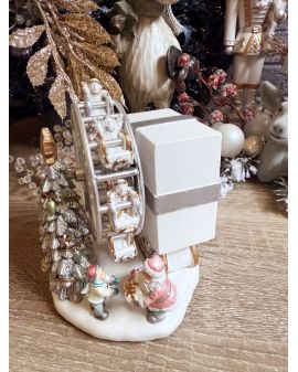 Figurka wykonana jest z ceramiki wysokiej jakości malowana specjalnymi lakierami. Pozytywka bożonarodzeniowa z mikołajem w saniach i reniferami. Po nakręceniu wybrzmiewa kolęda.