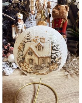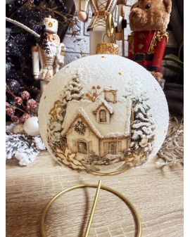 OZDOBA ŚWIĄTECZNA - DUŻA BOMBKA 120 mm decoupage DOM DOMEK model I