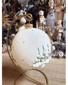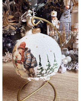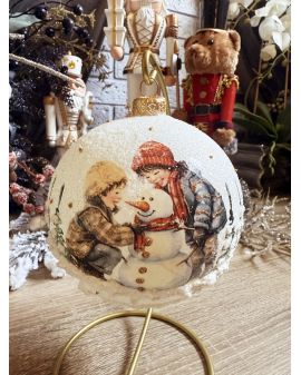 OZDOBA ŚWIĄTECZNA - DUŻA BOMBKA 120 mm decoupage DZIECI Z BAŁWANEM model I