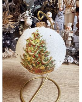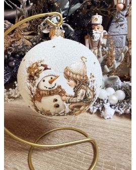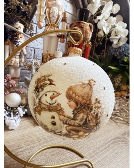 OZDOBA ŚWIĄTECZNA - DUŻA BOMBKA 120 mm decoupage DZIECI Z BAŁWANEM model III
