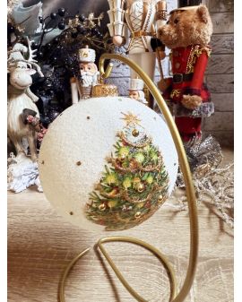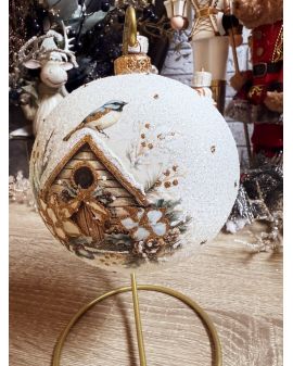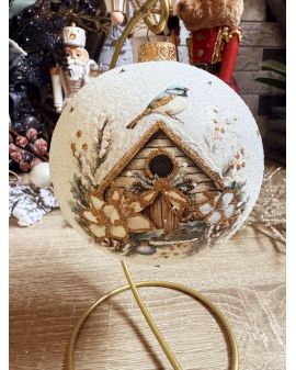 OZDOBA ŚWIĄTECZNA - DUŻA BOMBKA 120 mm decoupage PTASZKI model V