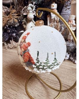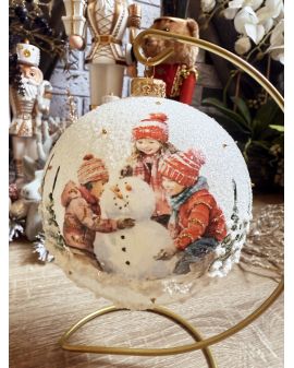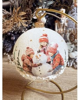 OZDOBA ŚWIĄTECZNA - DUŻA BOMBKA 120 mm decoupage DZIECI Z BAŁWANEM model IV