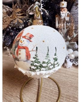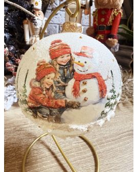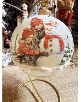 OZDOBA ŚWIĄTECZNA - DUŻA BOMBKA 120 mm decoupage DZIECI Z BAŁWANEM model V