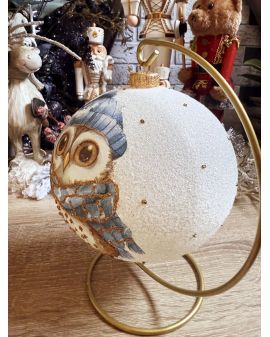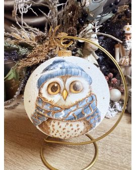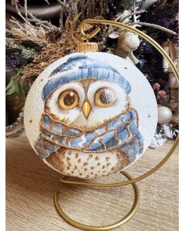 OZDOBA ŚWIĄTECZNA - DUŻA BOMBKA 150 mm DECOUPAGE - SOWA model XXXIa
