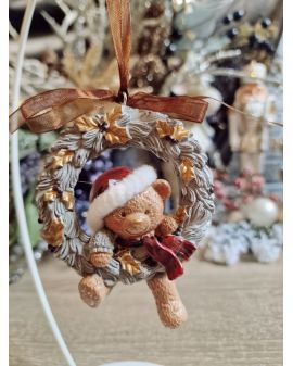 OZDOBA ŚWIĄTECZNA - ZAWIESZKA BOMBKA - MIŚ W WIEŃCU model III