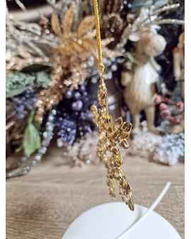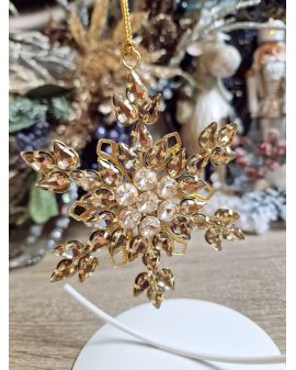 Ozdoba świąteczna - zawieszka na choinkę lub do postawienia jako zwykła ozdoba.  Wykonana z metalu oraz pięknie mieniących się szkiełek.