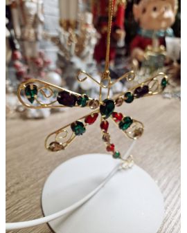 Ozdoba świąteczna - zawieszka na choinkę lub do postawienia jako zwykła ozdoba.  Wykonana z metalu oraz pięknie mieniących się szkiełek.