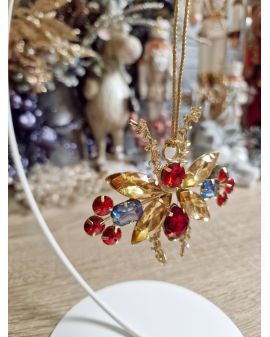 Ozdoba świąteczna - zawieszka na choinkę lub do postawienia jako zwykła ozdoba.  Wykonana z metalu oraz pięknie mieniących się szkiełek.
