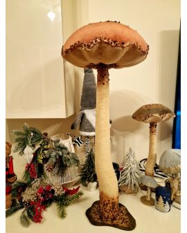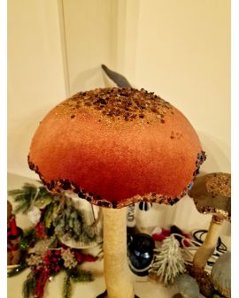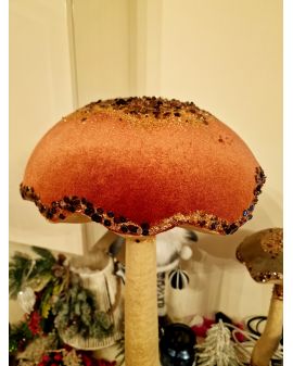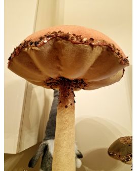 Grzyb wykonany z weluru w zielonym kolorze, ozdobiony brokatem, to stylowy element dekoracyjny, który doda charakteru każdemu wnętrzu. O wysokości 81 cm, grzyb doskonale nadaje się do wyeksponowania na półkach, stołach czy w donicach.