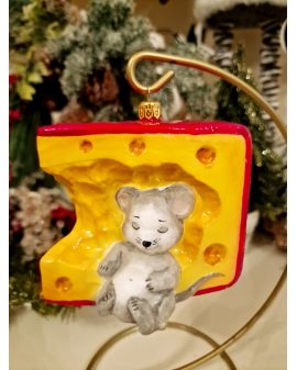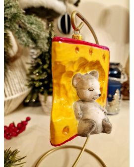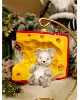 OZDOBA ŚWIĄTECZNA - ZAWIESZKA BOMBKA - MYSZ MYSZKA ŚPIĄCA W SERZE - Komozja