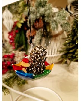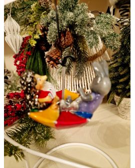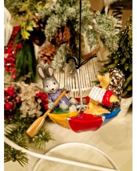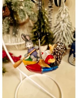 OZDOBA ŚWIĄTECZNA - ZAWIESZKA BOMBKA - ZAJĄC I JEŻ W PARASOLCE - Komozja
