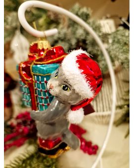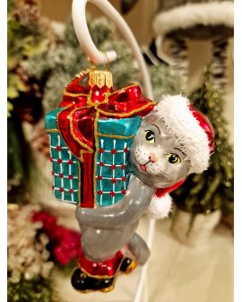 OZDOBA ŚWIĄTECZNA - ZAWIESZKA BOMBKA KOT Z PREZENTEM HURAS FAMILY