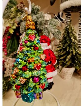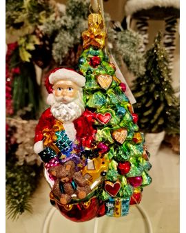 OZDOBA ŚWIĄTECZNA - ZAWIESZKA BOMBKA MIKOŁAJ Z CHOINKĄ I PREZENTAMI HURAS FAMILY