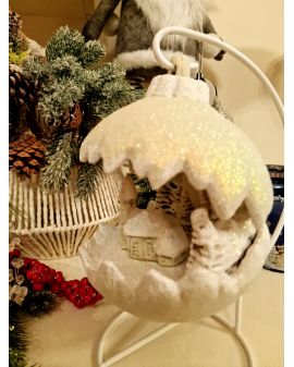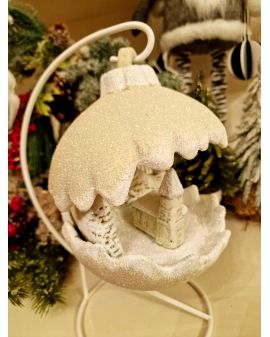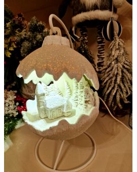 OZDOBA ŚWIĄTECZNA - KULA SCENKA BOŻONARODZENIOWA LED ecru model B