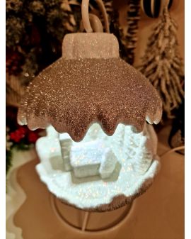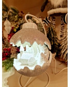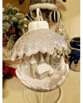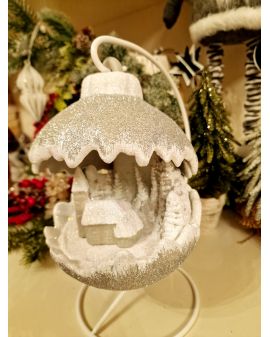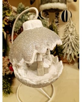 OZDOBA ŚWIĄTECZNA - KULA SCENKA BOŻONARODZENIOWA LED srebrna model B