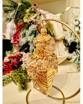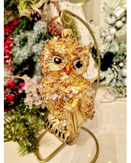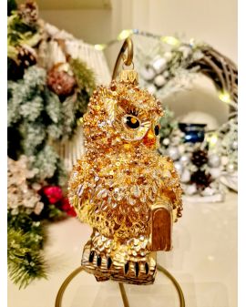 OZDOBA ŚWIĄTECZNA - ZAWIESZKA BOMBKA - duża SOWA Z KSIĄŻKĄ model V złota