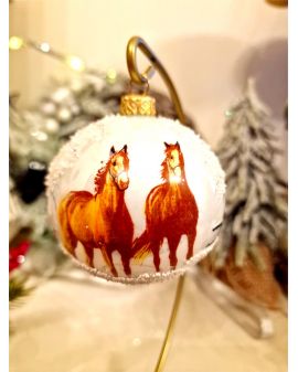 OZDOBA ŚWIĄTECZNA - ŚREDNIA BOMBKA 80 mm koń konie II