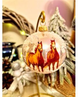 OZDOBA ŚWIĄTECZNA - ŚREDNIA BOMBKA 80 mm koń konie III