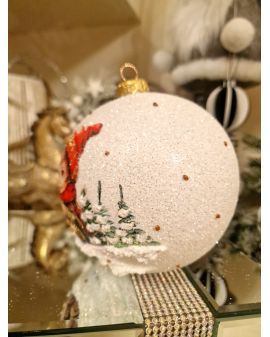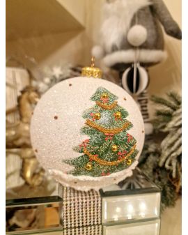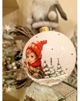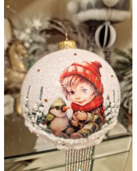 OZDOBA ŚWIĄTECZNA - DUŻA BOMBKA 120 mm decoupage DZIECI - chłopczyk z ptaszkiem