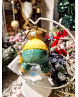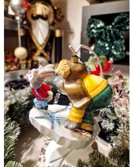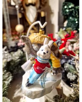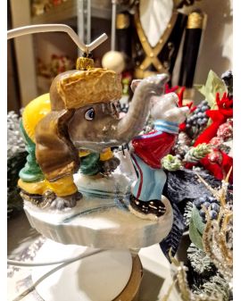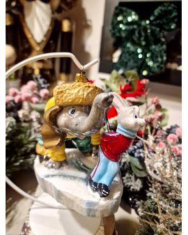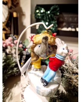 OZDOBA ŚWIĄTECZNA - BOMBKA - SŁOŃ I ZAJĄC NA ŁYŻWACH - Komozja