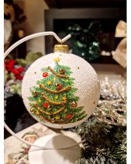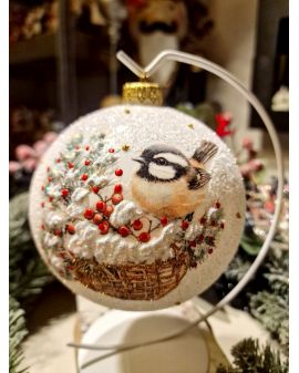 OZDOBA ŚWIĄTECZNA - DUŻA BOMBKA 120 mm decoupage PTASZKI model IV