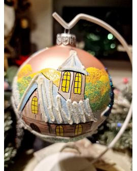 OZDOBA ŚWIĄTECZNA - ŚREDNIA BOMBKA 100 mm PEJZAŻ model XIV
