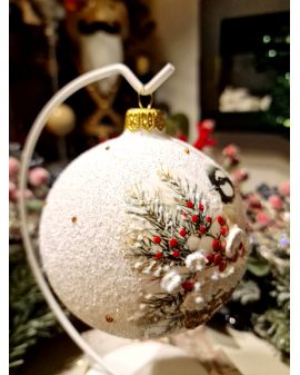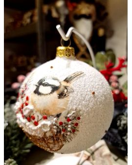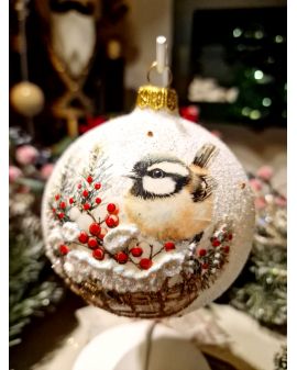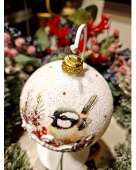 OZDOBA ŚWIĄTECZNA - DUŻA BOMBKA 100 mm DECOUPAGE PTASZEK model I