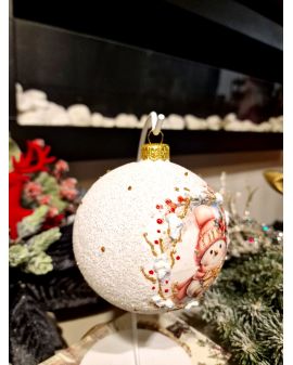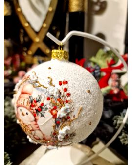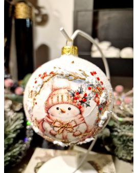 OZDOBA ŚWIĄTECZNA - DUŻA BOMBKA 100 mm DECOUPAGE BAŁWAN BOŻONARODZENIOWY model I