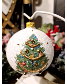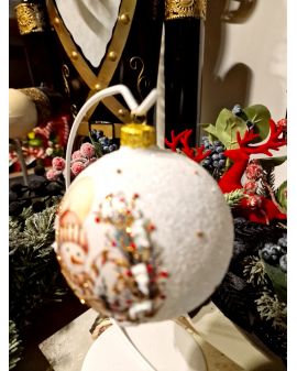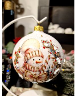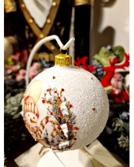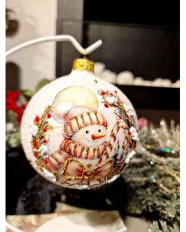 OZDOBA ŚWIĄTECZNA - DUŻA BOMBKA 100 mm DECOUPAGE BAŁWAN BOŻONARODZENIOWY model II