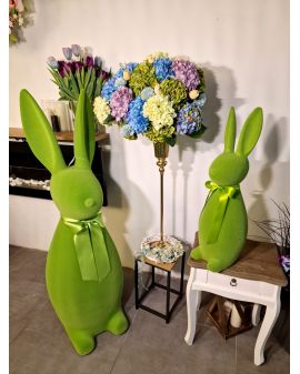 Elegancki flokowany zając to wyjątkowa dekoracja, która doda uroku każdemu wnętrzu. Pokryty delikatnym, aksamitnym w dotyku meszkiem prezentuje się niezwykle stylowo i naturalnie. Idealnie sprawdzi się jako ozdoba wielkanocna, wiosenna dekoracja domu lub element aranżacji stołu.