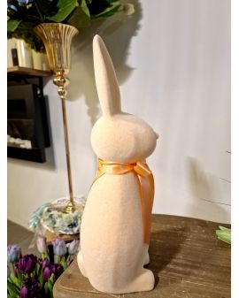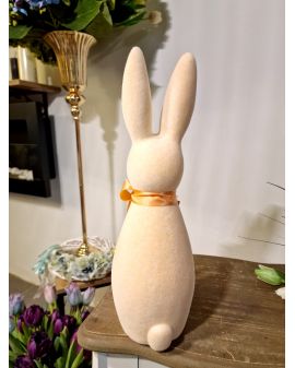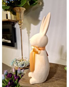 Elegancki flokowany zając to wyjątkowa dekoracja, która doda uroku każdemu wnętrzu. Pokryty delikatnym, aksamitnym w dotyku meszkiem prezentuje się niezwykle stylowo i naturalnie. Idealnie sprawdzi się jako ozdoba wielkanocna, wiosenna dekoracja domu lub element aranżacji stołu.