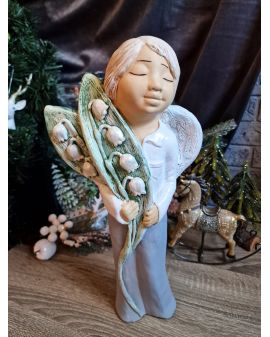 FIGURA GIPSOWA - ANIOŁ KWIATOWY - konwalia