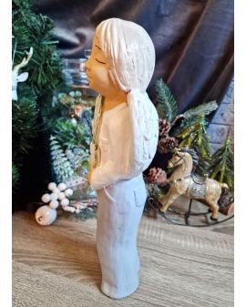 Figurka wykonana jest z wysokiej jakości gipsu  - malowana jest specjalnymi farbami.  Wg producenta figura pomimo, że jest gipsowa może stać na zewnątrz ale aby przedłużyć jej "żywotność' dobrze jest je chować na zimę oraz chronić przed deszczem.