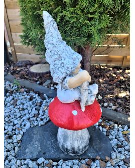 Figurka wykonana jest z wysokiej jakości gipsu - malowana jest specjalnymi farbami. Wg producenta figura pomimo, że jest gipsowa może stać na zewnątrz ale aby przedłużyć jej "żywotność' dobrze jest je chować na zimę oraz chronić przed deszczem.