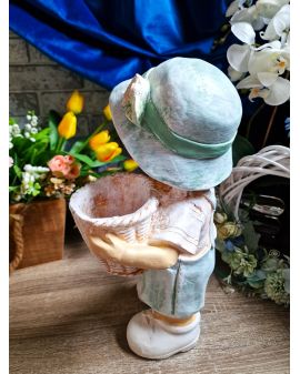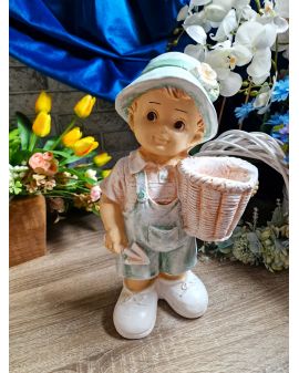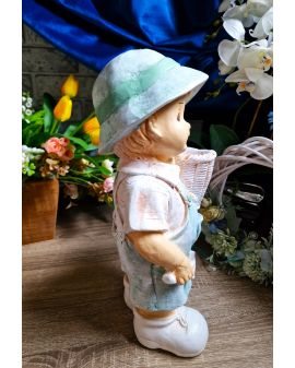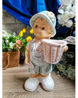 FIGURA GIPSOWA - CHŁOPIEC Z KOSZYKIEM na boku