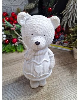 FIGURA GIPSOWA - DUŻY STOJĄCY BIAŁY MIŚ W SWETERKU model I