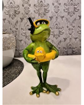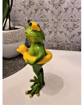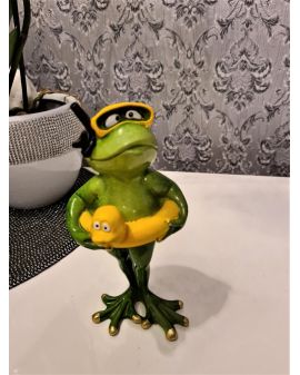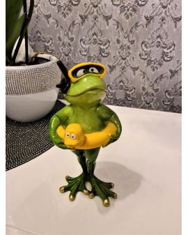 FIGURA CERAMICZNA - ŻABA ŻABKA Z KOŁEM RATUNKOWYM