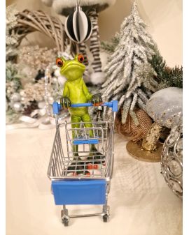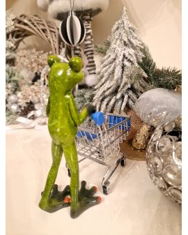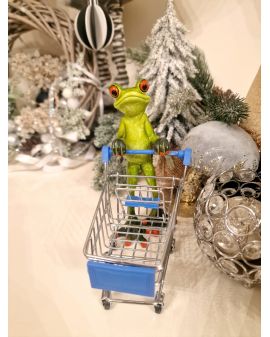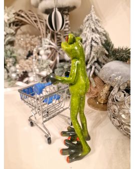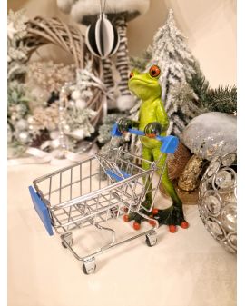 FIGURA CERAMICZNA - ŻABA ŻABKA Z WÓZKIEM SKLEPOWYM model II