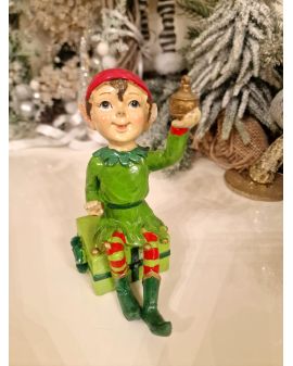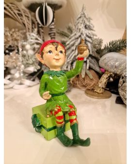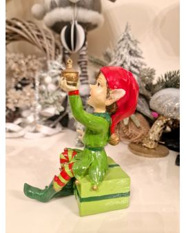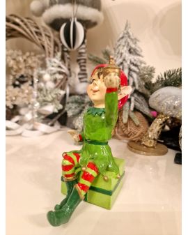 FIGURA CERAMICZNA - BOŻONARODZENIOWY ELF Z PREZENTEM model I
