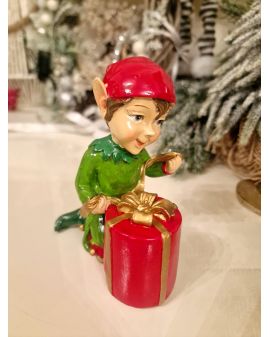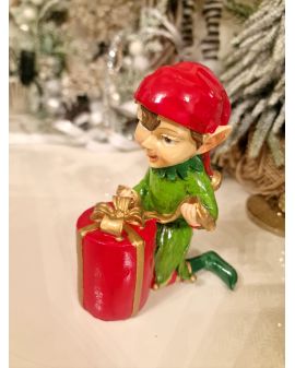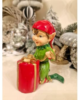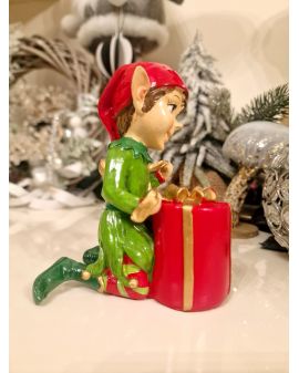 FIGURA CERAMICZNA - BOŻONARODZENIOWY ELF Z PREZENTEM model II