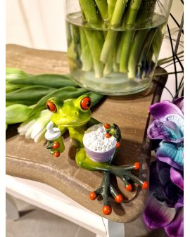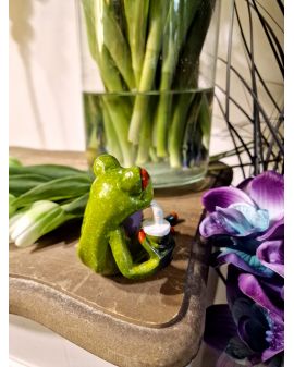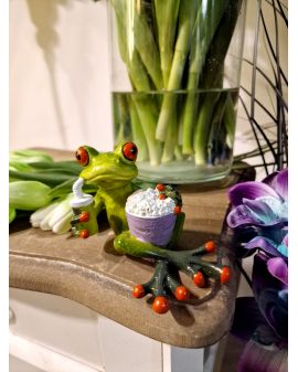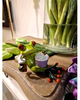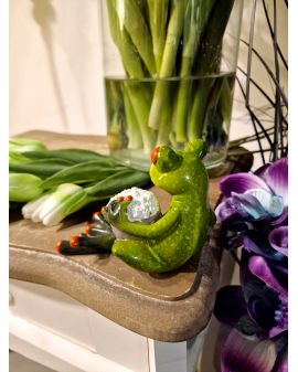 FIGURA CERAMICZNA - ŻABA ŻABKA LEŻĄCA Z POPCORNEM