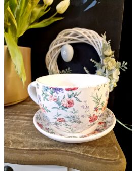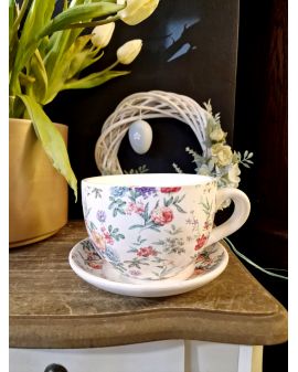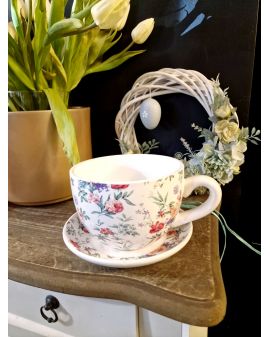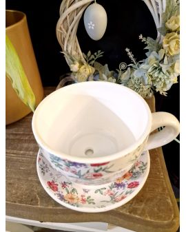 Ceramiczna doniczka w kształcie filiżanki ze spodeczkiem – urocza dekoracja do Twojego wnętrza!
